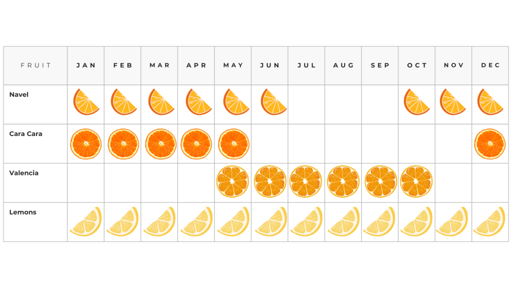 - Navels: November through June